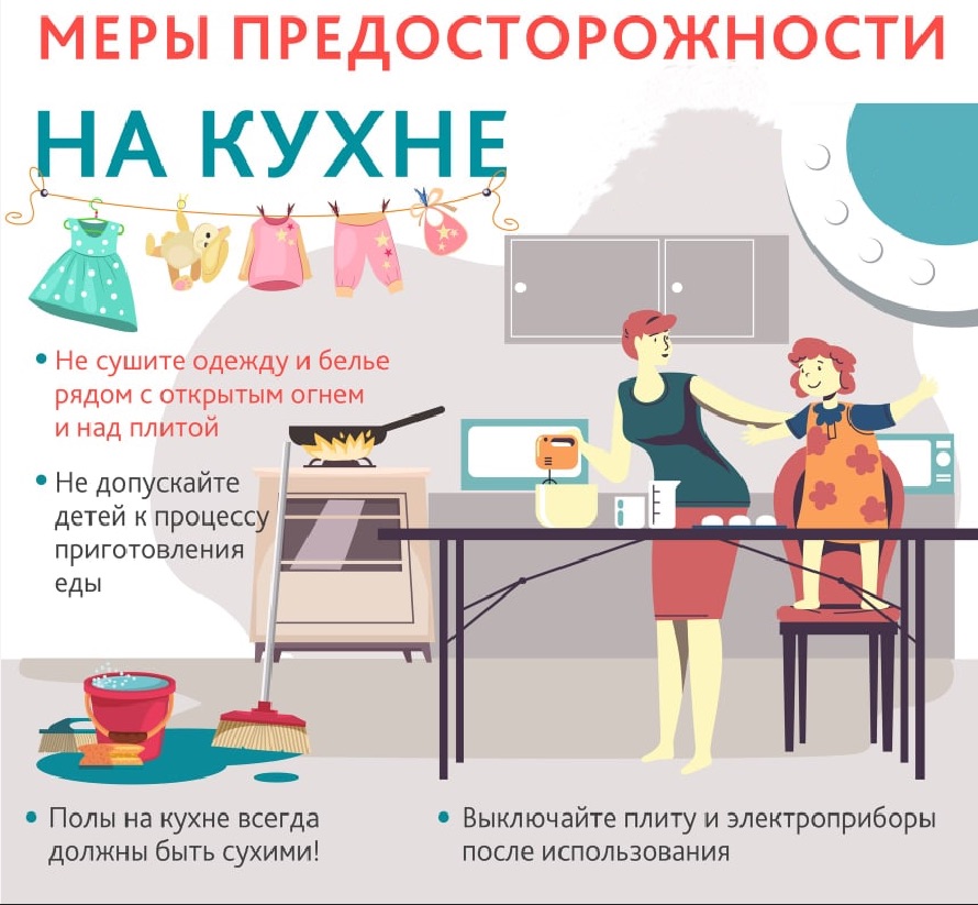 Постарайтесь держать подальше от плиты все, что может загореться: полотенца, прихватки, бумажные пакеты и коробки. Если плита стоит у окна, во время готовки обязательно отодвиньте занавески, так как масло на сковороде может загореться и огонь перекинется на них.