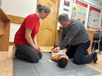В начале семинара преподаватель раздала его участникам рабочие тетради по оказанию первой помощи пострадавшим. В красочно иллюстрированном издании приводится перечень состояний и перечень мероприятий по оказанию первой помощи, состав аптечки первой помощи, даются советы по психологической поддержке пострадавшего.