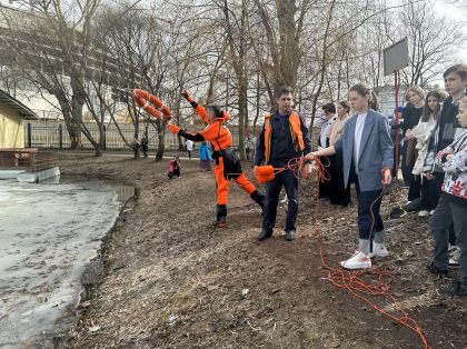 «Из интересного рассказа спасателя мы узнали, как можно спасать людей, провалившихся под лед. В первую очередь, нужно позвонить по номеру «112». Если поблизости нет взрослых, можно попытаться помочь человеку выбраться из-подо льда, осторожно подползая к проруби. Когда до пострадавшего останется 2-3 метра, надо протянуть ему ветку, палку, шарф или куртку», – поделились полученными знаниями ученицы 5 «Н» класса школы № 1501 Кристина Боркова и Василиса Соколинская.