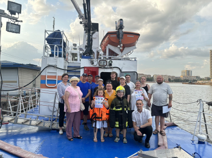 Экскурсанты узнали о том, что «Полковник» может проводить аварийно-спасательные и водолазные работы, ликвидировать аварийные разливы нефтепродуктов на акватории, доставлять боевой расчет, пожарное и специальное спасательное оборудование, а также аварийно-спасательный инструмент к месту пожара.
