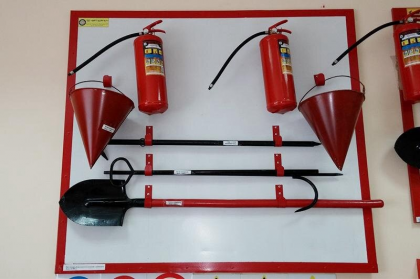 Весьма сомнительным достоинством конусного ведра выглядит возможность проломить им лед для дальнейшего набора воды и тушения пожара. Выполнить такие действия реально только в случае с тонким льдом. В середине зимы, когда морозы простояли уже длительное время, пробить отверстие будет невозможно. Разумнее для этих целей использовать лом, который также есть на щите с инструментами.